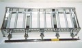 直径45ミリ18個穴、直径38ミリ28穴のたこ焼き器、直径78ミリ6個穴、直径73ミリ8個穴今川焼き器、直径48mm18個穴の銅板たこ焼き器、共通の5枚掛けのステンレス製ガスコンロです。このコンロと銅板たこ焼き器を組み合わせますと、手軽にたこ焼き屋さんが開業できます。もちろん業務用です。(サイズ980×360×185)